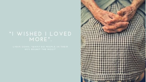 Jawaban para lansia ternyata sama yaitu “tidak.” Yang mereka sesali adalah justeru hubungan mereka dengan orang-orang yang mereka cintai: orangtua, suami/isteri, anak-anak, saudara, dan teman-teman. Dengan pandangan menerawang, mereka bergumam pelan seandainya waktu bisa diputar, mereka ingin mencintai orang-orang itu lebih dalam lagi.
