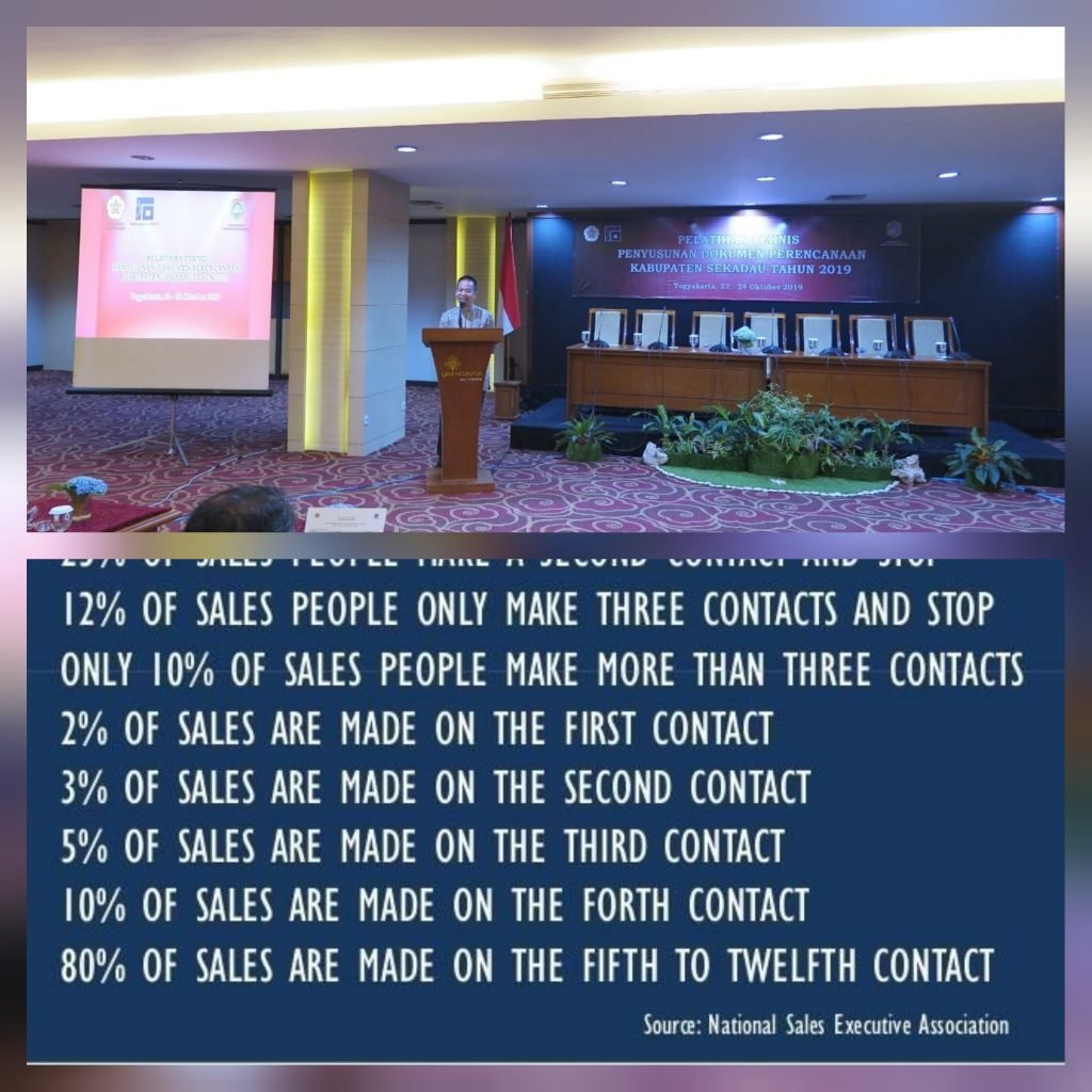 Jadi tidak ada salahnya ternyata menyambut sambil menjual, kalau belum berhasil kan statistik menunjukkan 80% penjualan terjadi pada kontak ke-5 sampai ke-12.