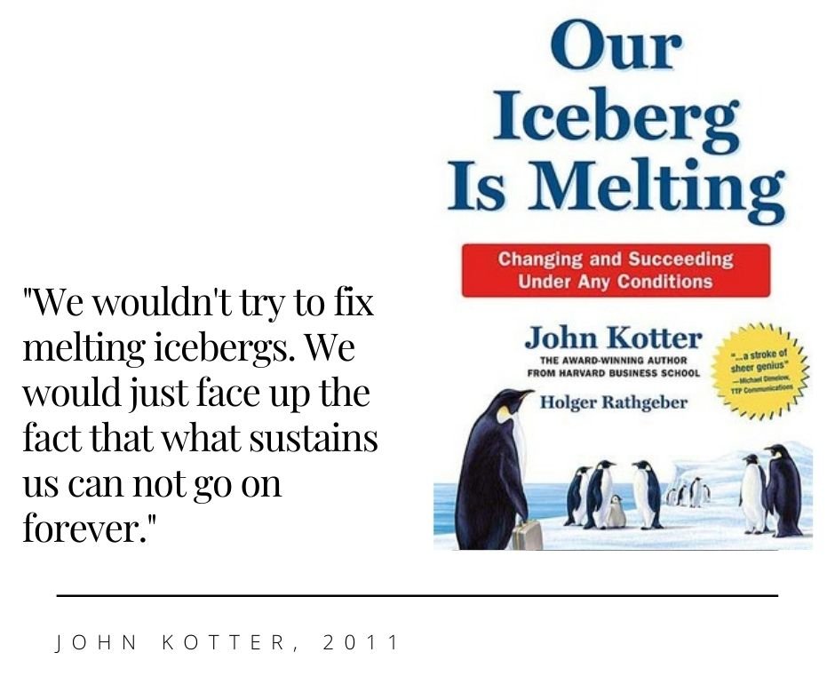 Bagi perusahaan atau daerah yang sumber pendapatan utamanya sangat terdampak oleh pandemi, maka ide bisnis dari John Kotter menjadi relevan: Our iceberg is melting…
