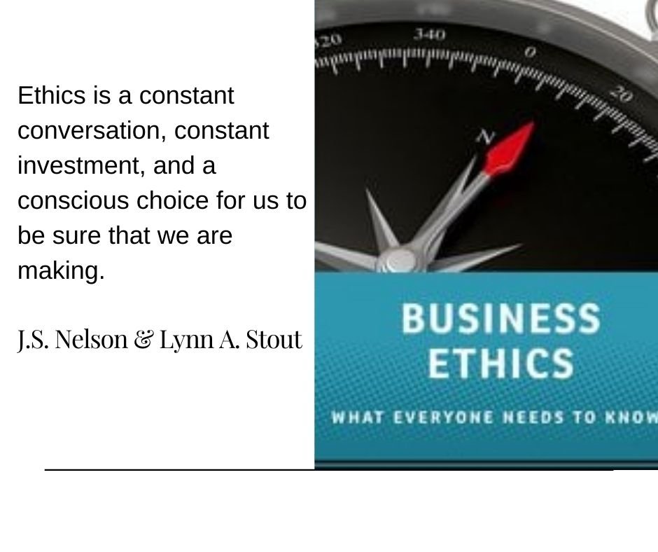 Buku Business Ethics karya J.S. Nelson & Lynn A. Stout memberi kita wawasan dan renungan mengenai pentingnya etika bagi individu maupun organisasi dalam mengambil keputusan dan berperilaku. Dan ini relevan sekali dengan situasi yang kita jumpai di negeri kita. Sengkarut industri asuransi, isu tentang pejabat atau keluarga pejabat yang berbisnis, atau tren media yang mengutamakan kecepatan daripada kualitas adalah contoh-contoh yang berhubungan erat dengan etika.