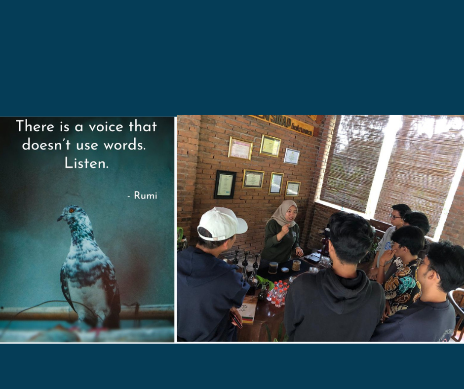 Kali ini giliran para mahasiswa termenung mencerna kata-kata barista yang mirip puisi Rumi.